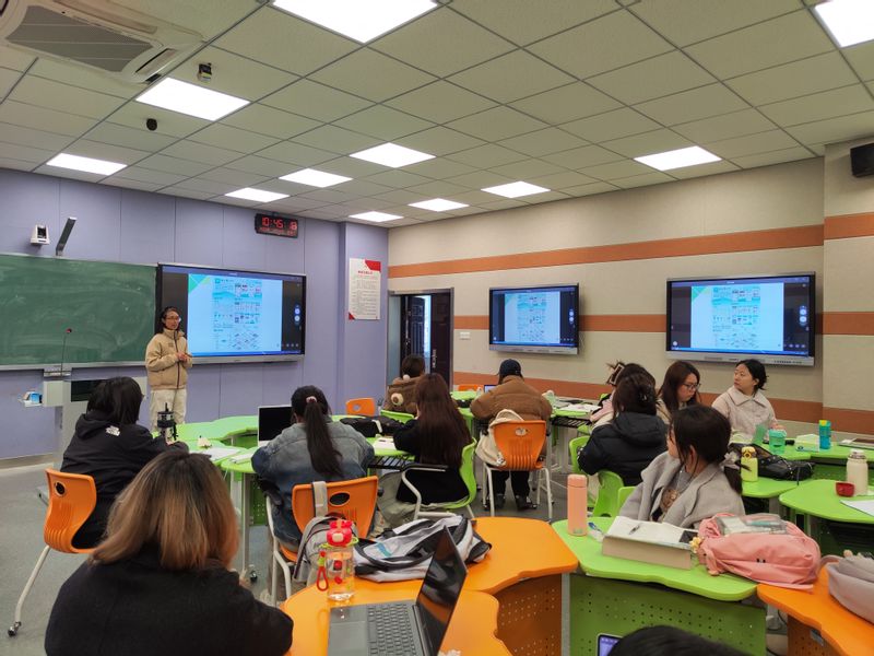 程瑶老师结合多年的教学与大创赛经验,引导学生们探索标识设计和UI界面设计的无限可能。在课程设计中,老师通过“望、闻、问、切”的方式开展了一场有趣的标识设计大诊断,引导学生用智能体辅助设计。程瑶老师讲述了UI界面设计在用户体验中的关键作用以及举出很多优秀获奖作品案例,希望同学们在大创赛的背景下,结合自己的项目策划做出优秀的UI作品,以此达到以赛促教的目的。学生们积极参与,通过实际操作,加深了对课程知识点的理解,在课堂上踊跃提出自己的创意和见解。