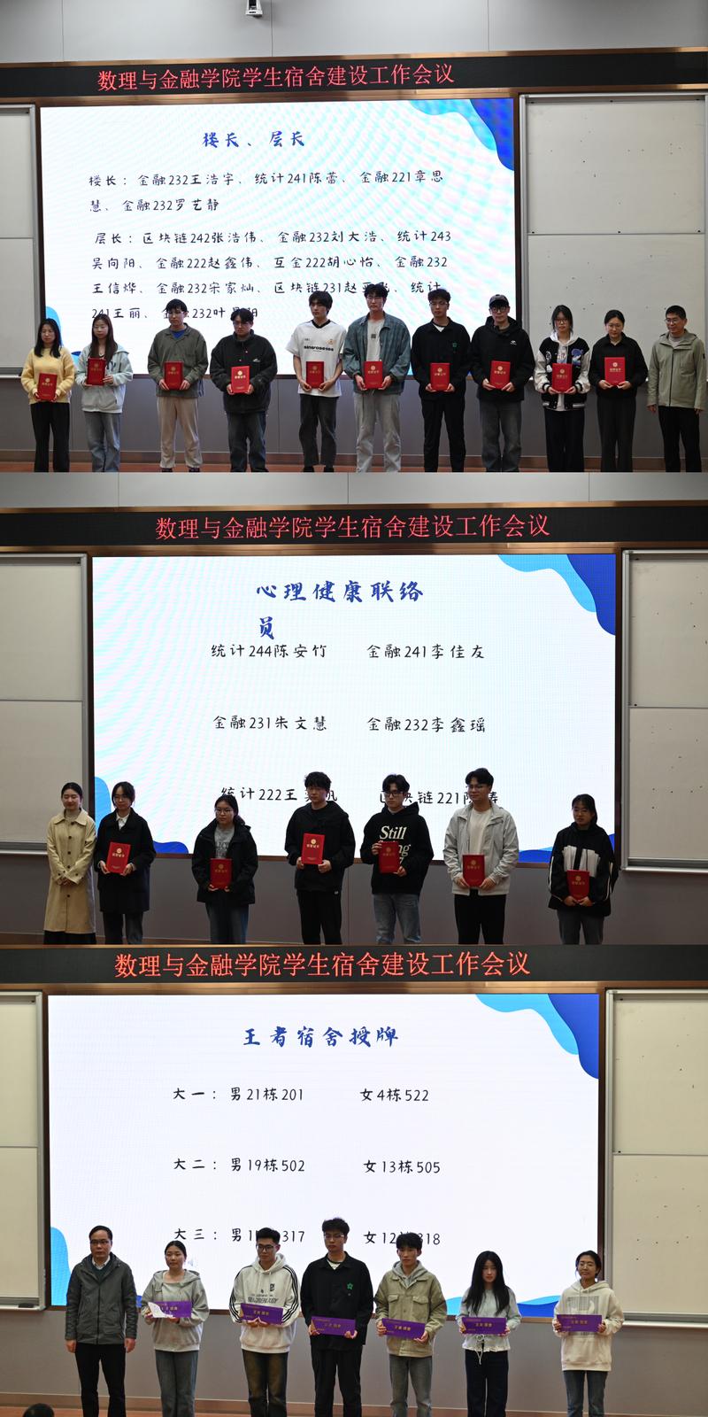 数理与金融学院将以此次会议为契机,进一步创新举措,以安全为基、和谐为魂、责任为要,持续深化学生宿舍创建,努力将学生宿舍打造成“生活舒适、管理规范、文化育人”的温馨家园,为同学们的成长成才保驾护航。