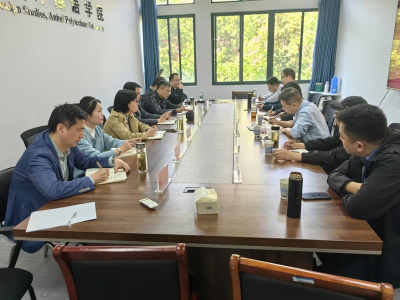本网讯 4月14日,安徽建筑大学外国语学院党总支书记余鸿、院长徐春山一行到访外国语学院开展调研交流。学院党委书记董金权,副院长(主持工作)唐雪梅,副院长李新国及相关系部负责人出席交流会,会议由唐雪梅主持。