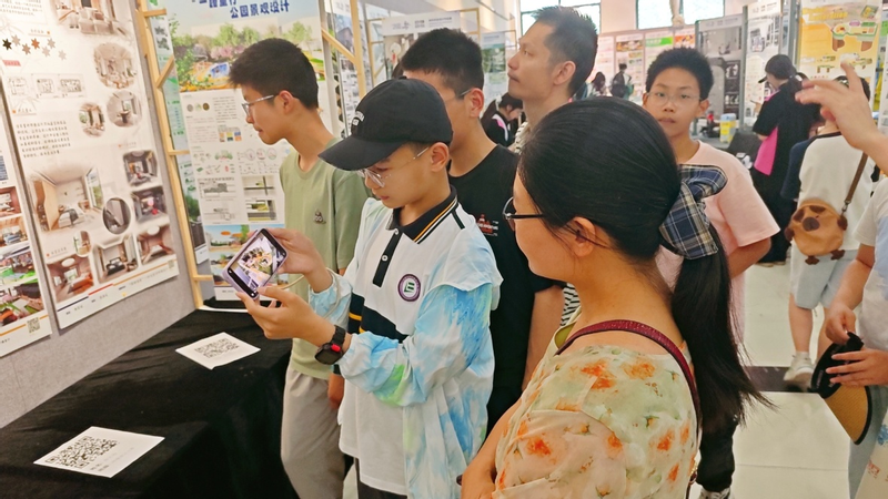 本网讯 5月25日至26日,来自芜湖一中、芜湖三中、荟萃中学、中江中学、芜湖田家炳中学以及安徽师范大学城东附外校区初中的学生们,在家长的陪同下,来到我校设计学院参观2025届本科毕业设计展,开展了一场富有启发性的学习交流活动。