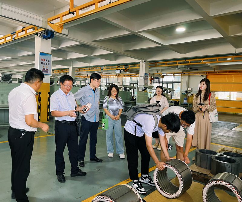学院一行参观了安徽飞翔电器有限公司的生产车间,近距离了解了企业的产品制造过程。飞翔电器是一家集研发、生产、销售和服务为一体的省级技术创新示范企业,主导产品为电机核心部件——电机总成,其产品广泛应用于新能源汽车、风力发电、轨道交通等高效节能电机及发电机等领域。公司创始人王文彬、总经理王锦波、金爱民等接待考察人员,并对公司的初期创业、后期发展和未来规划作了详细介绍。韩利敏对学院的师资情况和人才培养进行了介绍,双方就企业的产品外贸业务和海外市场调研进行了深入讨论和交流。