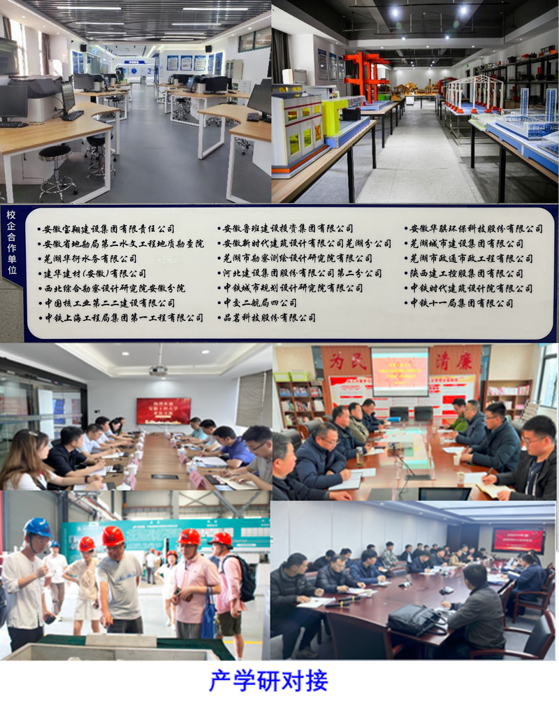 学院党委坚持以习近平新时代中国特色社会主义思想为指导,牢固树立“抓党建就是抓全局”的工作理念,聚焦立德树人根本任务,强化基层党建工作创新,凝聚力量推动学院高质量发展。2021年以来,学院党委先后获批“1+3”党建共建校级示范项目、创建校级党建品牌,土木工程系教师党支部先后获批“样板党支部”、教师党支部书记“双带头人”工作室建设单位,2023年学院党委获评校“双强党委”,2025年获评学校党建工作标杆院系培育创建单位。在学院党政的共同努力下,2022年以来,学院党委先后与中国核工业第二二建设有限公司、中铁十五局集团、中铁建工集团南京公司、中铁十一局华东公司、中铁十局三公司、中交二航局四公司、中铁时代建筑设计院、浙江品茗科技股份有限公司、芜湖华衍水务、安徽省江北华衍水务有限公司、芜湖三峡集团、和县住房和城乡建设局浙江交工集团、安徽建工集团、中铁城市规划设计研究院等30余家企事业单位开展校企合作,签订党建共建、大学生劳动教育与实习实践基地、产学研合作等项目,积极参与芜湖市海绵城市建设,为学院发展创造良好外部条件。