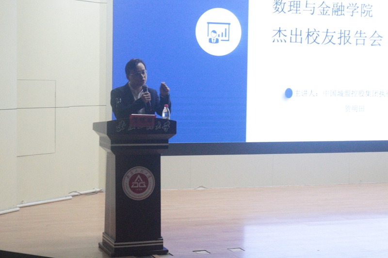 为了进一步提高学生专业认知能力,激发2020级学生学习动力,激励学生成长成才,10月18日上午,数理与金融学院邀请杰出校友--中国城盟控股集团执行总裁、中国“一带一路”PPP项目开发委员会专家团成员贺明田来校做报告。报告会由学院党委副书记刘伟主持。
