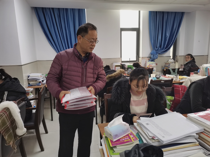 寒冬不冷,温暖同行。为帮助2021届考研学子迎接即将到来的2021年研究生考试,数理与金融学院于12月10日上午开展慰问考研学子活动。数理与金融学院院长王传玉、党委副书记刘伟以及毕业班辅导员一起来到考研自习教室,看望、鼓励考研学子,并赠发考研文具,在考研学生最后攻坚阶段送上一份温暖和支持。