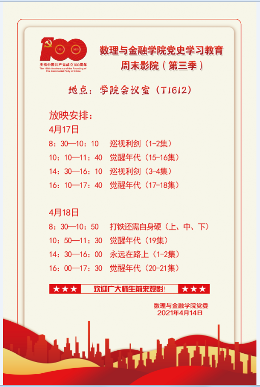 数理与金融学院党史学习教育周末影院(第三季)