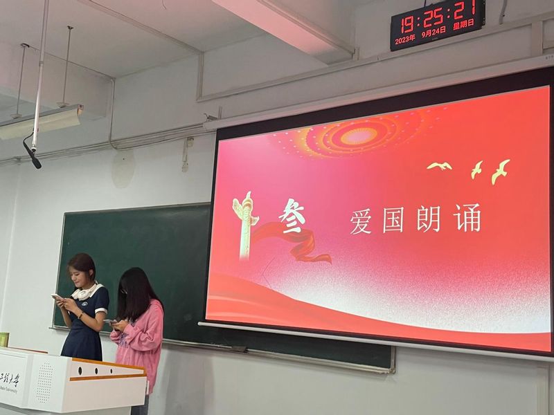 2022级同学结合知识竞答的方式,将党的二十大和校史校情融入其中。“党的二十大主题是什么?”“三全六专”具体是哪些?引导同学们在参与活动中加强学习。团员代表邓建月、李肖何深情朗诵诗歌《月光下的中国》,展示了团员青年对于祖国的热爱与眷恋。