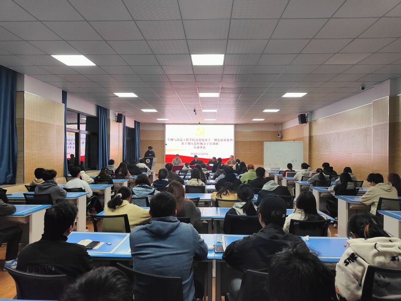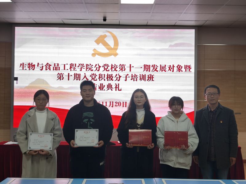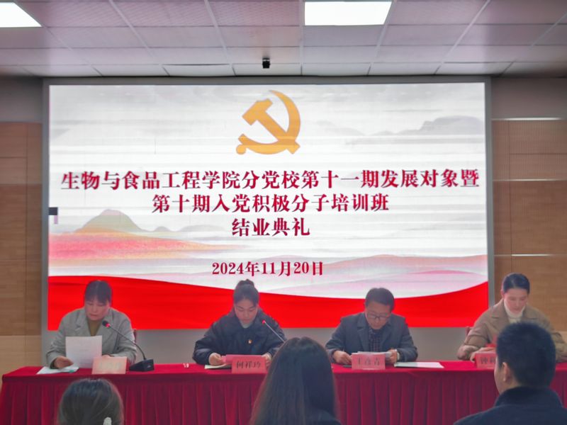1120日,生物与食品工程学院分党校在学院虚拟仿真中心举办第十一期发展对象暨第十期入党积极分子培训班结业典礼。本期培训班全体学员参加结业典礼,学院党委副书记王彦青、学院团委负责人、辅导员代表出席典礼,典礼由培训班班主任王玲玲主持。