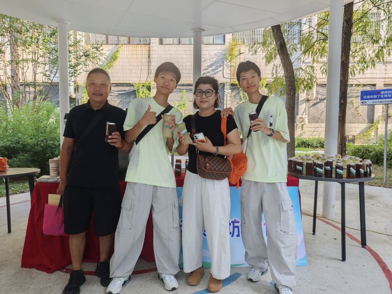 师生团队运用食品工艺知识,手工制作、免费派送“学院特调”饮品——清新爽口的手打柠檬水、润燥甘甜的柚子蜂蜜水以及冰淇淋。每一杯饮品都是可品尝的教学成果,生动诠释了“学以致用”的教学理念,让抽象的专业知识变得看得见、摸得着、喝得到,瞬间拉近新生与专业的距离。既是专业实践的生动展示,也让新生和家长在舟车劳顿后品尝到一份独特的清甜,于细微处深刻感知学科魅力,收获满满惊喜与感动。